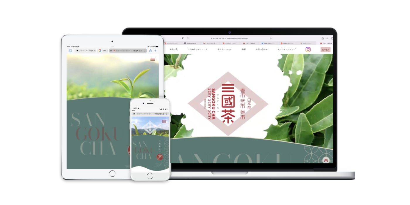 三丹地域の茶葉を使った新ブランドのサイト。ECサイトへの動線になり、地域の魅力も発信できるような多角的なサイト。 インバウンド対応としてEnglishページ実装。